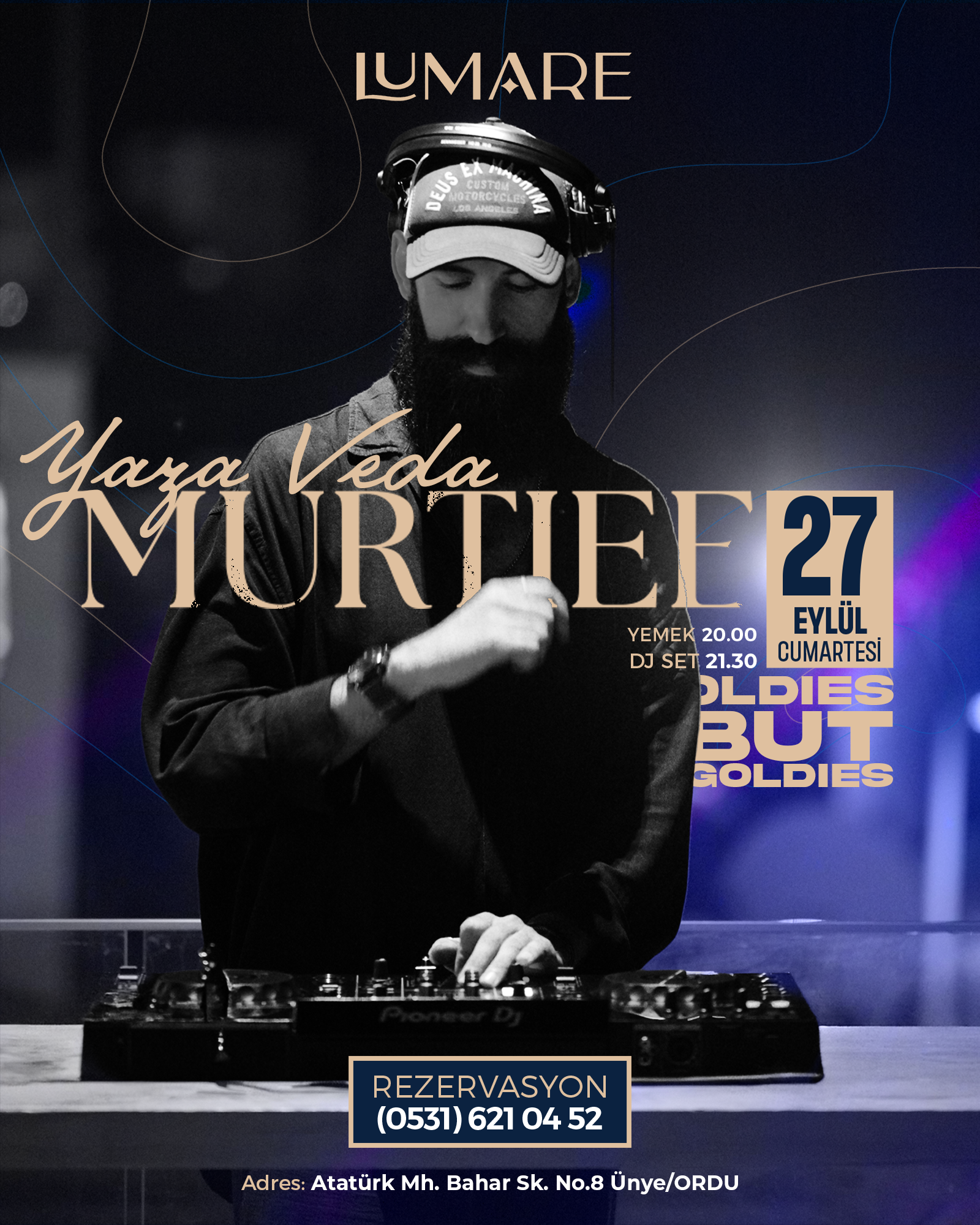 27 Eylül Cumartesi, DJ Performansı ile DJ Murtiee muhteşem bir yaz akşamı sunuyoru.